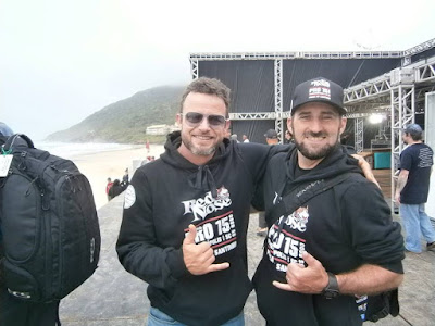 | The English-speaking commentary team for the ASP Saquarema Prime, Steve "Action" Jackson and big wave surfing legend Peter Mel! |