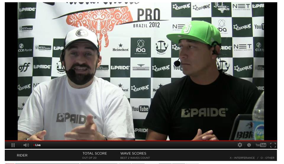 | Frame grab of Steve "Action" Jackson and Manny Vargas from live webcast of the 2012 Itacoatiara Pro in Brasil. |