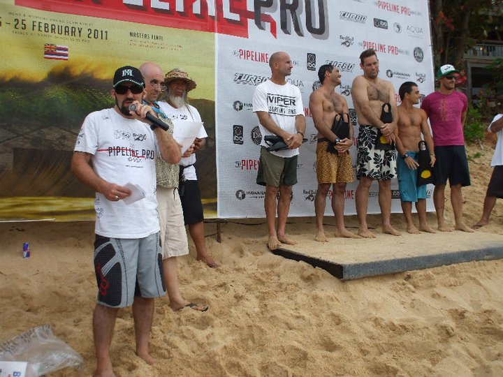 | The Pipeline Bodysurfing Classic competition was run as part of the IBA Pipe Pro. I was asked to work as beach announcer and MC...stoked! Photo: Manny Vargas |