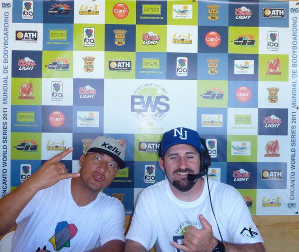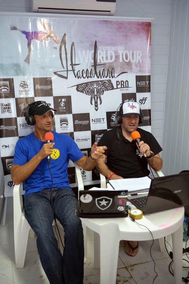 | Bodyboarding legend Jay Reale and Steve "Action" Jackson hosting the English-speaking commentary for Rio Bodyboarding International 2013. |