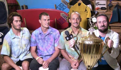 | Hoisting the APB Men's Championship Trophy on The Morning Show in front of title contenders Pierre Louis Costes (France), Jared Houston (South Africa), and Amaury Lavernhe (Reunion Island). |